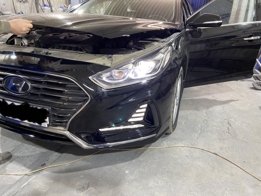 Проводил замену капота, обеих решёток и выполняли их покраску. Цвет машины мудрёный - чёрная вишня перламутр, сотрудники классно подобрали!